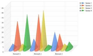 Demonstrates stacked cones in 3D.