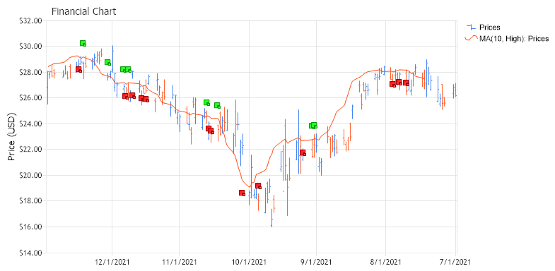 Dim movingAverage As Series = FinancialEngine.SimpleMovingAverage (prices, ElementValue.High, 10)