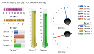 Demonstrates using absolute positioning of several gauges on a single chart.