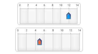 Demonstrates a horizontal thermometer gauge using shading effect Four and a scale break.