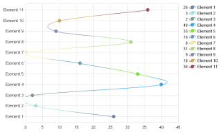 Demonstrates a dumbbell slider chart with styled lines that encompass element markers. Uses firstPoint and lastPoint to manage styling.