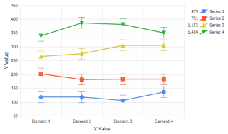 Demonstrates error bars on chart lines.