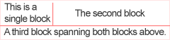 Label.Text = "This is a<br>single block<block>The second block<row>A third block spanning both blocks above."