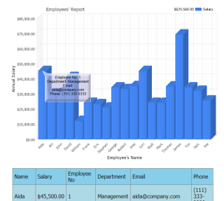 Displays a tabular chart data in a custom datagrid along with the chart image.