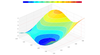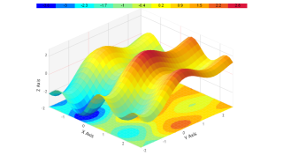 Demonstrates a 2D surface chart with contour lines.