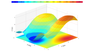 Demonstrates a 3D surfaceX chart with DrawToFloor.